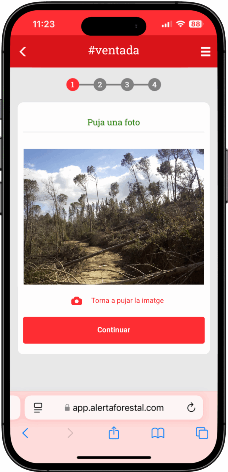 Accedeix a l'aplicació AlertaForestal per introduir la teva observació. També pots fer-ho des del teu ordinador o tauleta a través de la web-app.