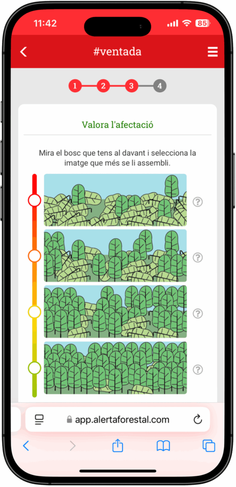 A l'aplicació trobaràs una guia visual que t'ajudarà a valorar l'afectació, tot i que en alguns casos pot ser que resulti més difícil. Encara que no sigui exacta, la teva valoració serà molt útil.