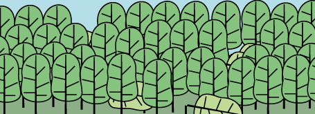 Fes una fotografia de paisatge en horitzontal, on es vegi tot un bosc amb arbres caiguts pel vent.