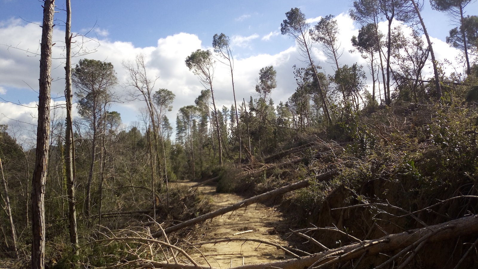 El vent pot tombar els arbres aixecant les arrels o partint el tronc. No ens interessen els arbres que hagin estat talats pels equips de treballs forestals.