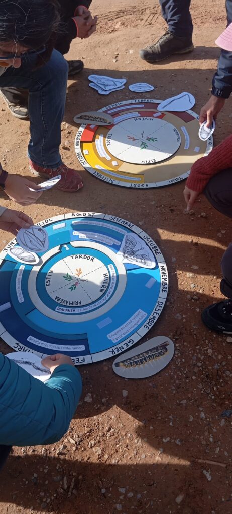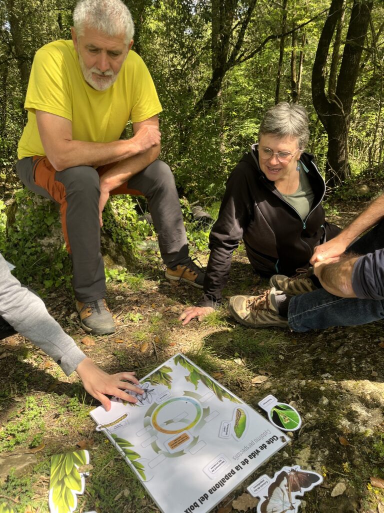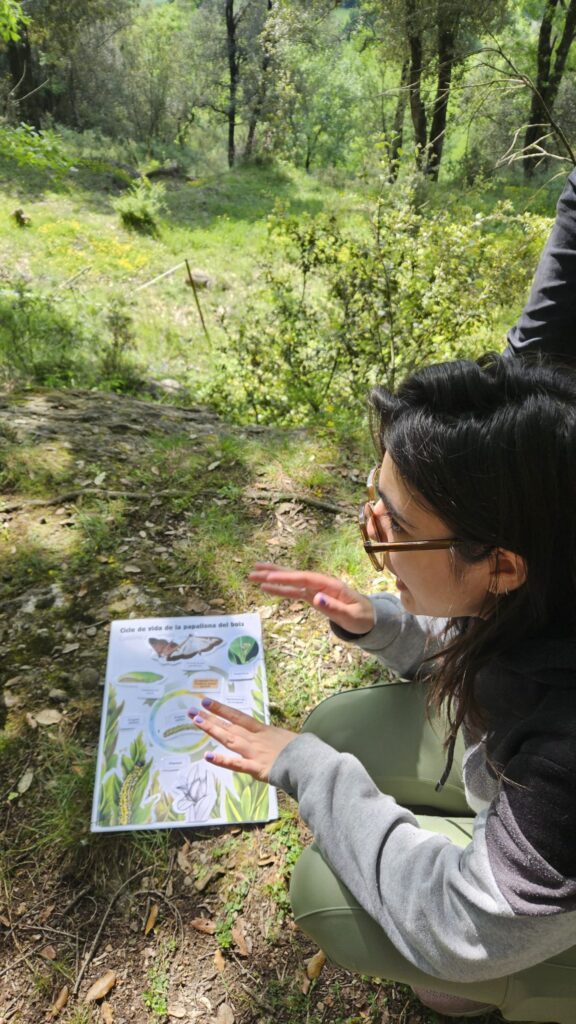 El projecte ha inclòs tallers centrats en afectacions concretes, com el dedicat a l’eruga del boix, que vam realitzar a Olot el passat mes de maig amb l’acompanyament del Centre Excursionista d’Olot. Allà vam trobar una zona de bosc amb afectació molt severa, on gairebé cap boix conservava fulles. Tot i això, als voltants d’una finca vam poder observar alguns exemplars en bon estat i fins i tot erugues vives in situ, cosa que va permetre tancar el taller amb una petita observació de l’espècie i els seus primers efectes sobre boixos sans.