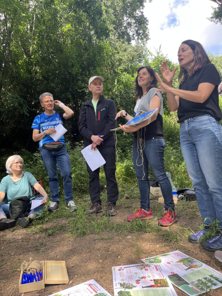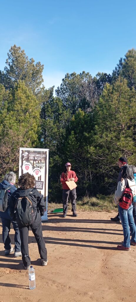 També vam fer parada al Pla de Santa Maria, on el grup d’excursionistes de la Xiruca Foradada va mostrar un gran interès per entendre com detectar els efectes del canvi climàtic als boscos mediterranis i quin paper pot jugar-hi la ciència ciutadana.